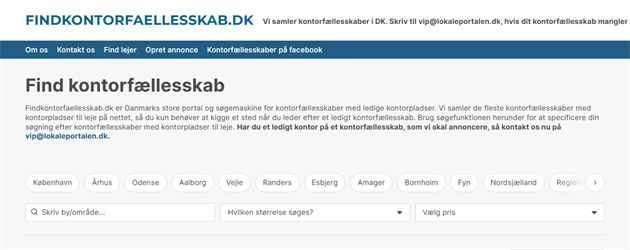 Findkontorfællesskab.dk is Denmark's first unified marketplace dedicated to shared offices, office hotels and corporate buildings.