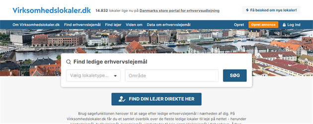 Virksomhedslokaler.dk is a large niche portal that specializes in renting out small commercial premises under 500 m2.